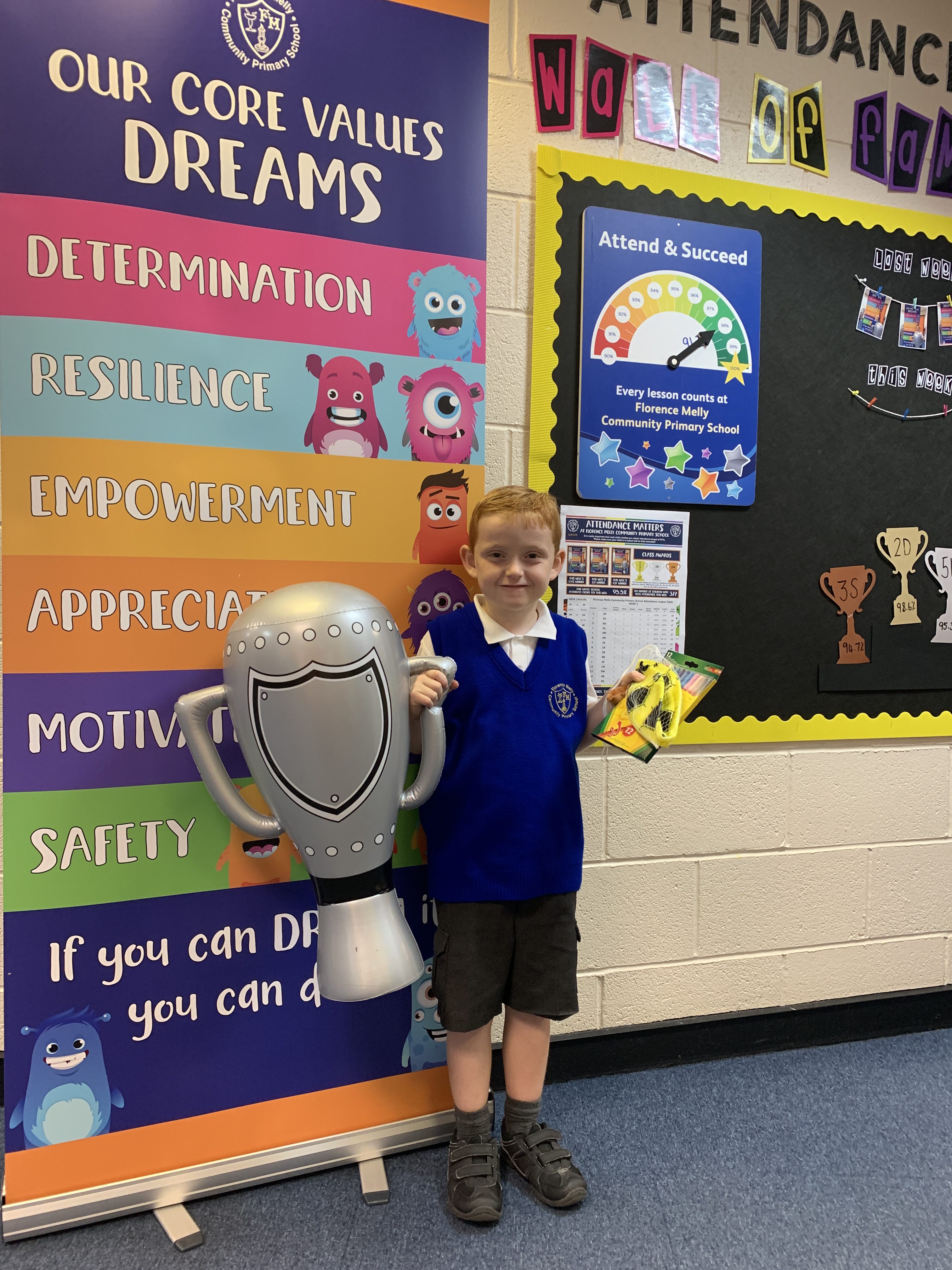 A huge well done to this week’s 100% attendance winners! We are so proud of you!! In school, on time, every day this week – that is exactly what we want! Each child has received 50 Dojo points and wonderful prizes from our Dojo cabinet. Well done!