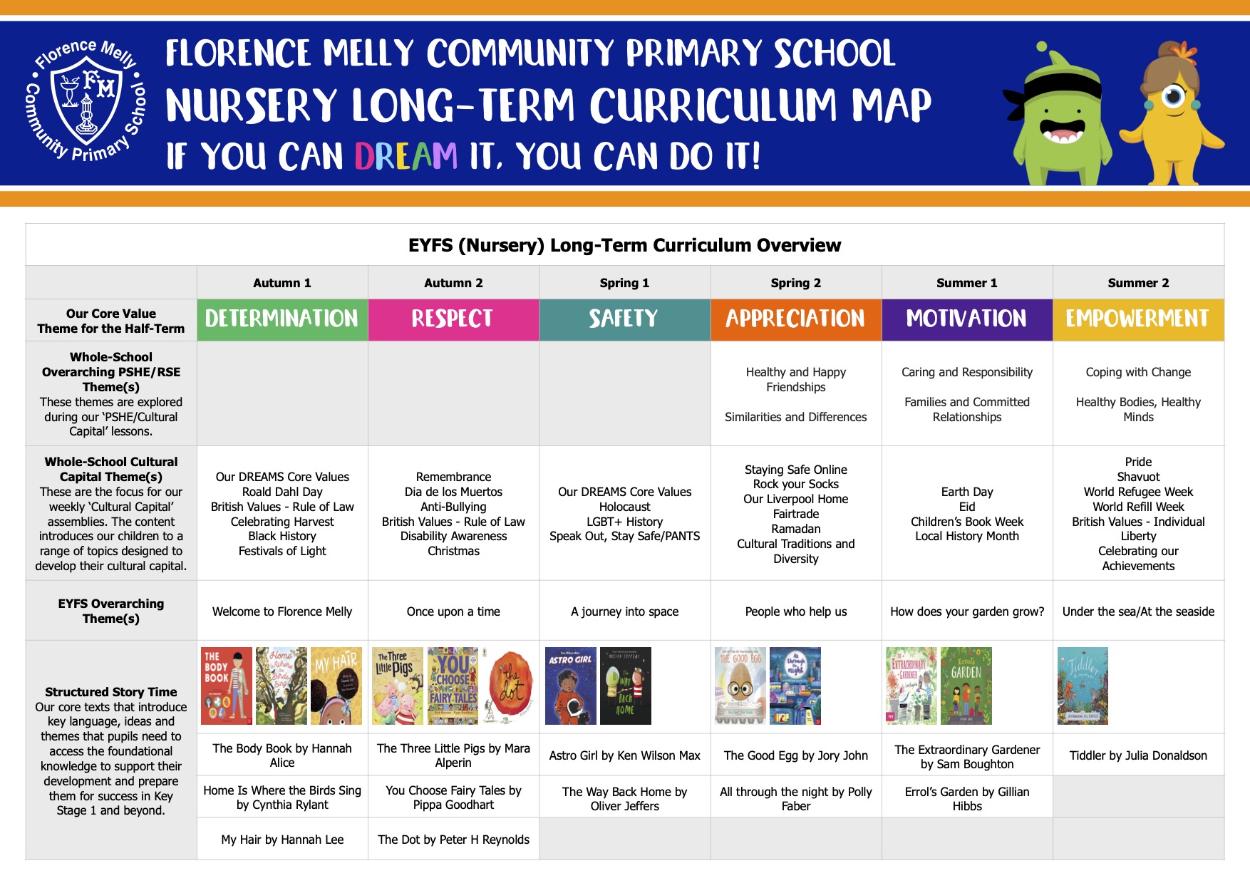 Please click on the image below to access our Nursery long-term curriculum map. This outlines the content of our school curriculum for our Nursery children for the 2023/24 academic year.