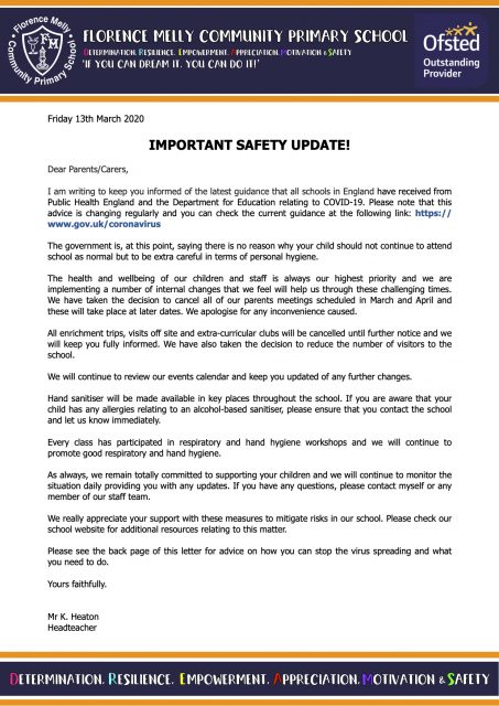 Please find below a copy of the letter sent out by the Headteacher on Friday, outlining the measures we have put in place to mitigate risks in our school.