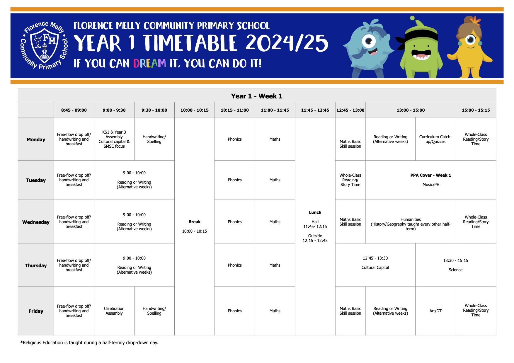 Our school day runs from 9:00am until 3:15pm. Please make every effort to get your child into school on time and leave them in school for the duration of the school day. We discourage you from collecting them early! We do not want the children to miss any learning opportunities.
