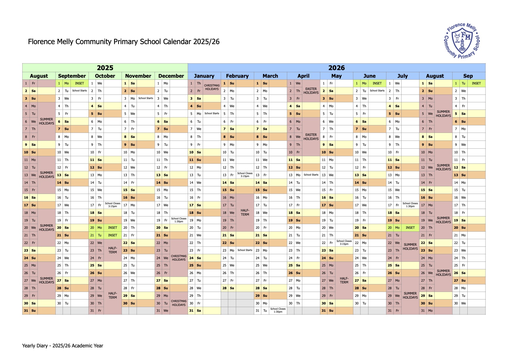 Our Printable Term Date Documents