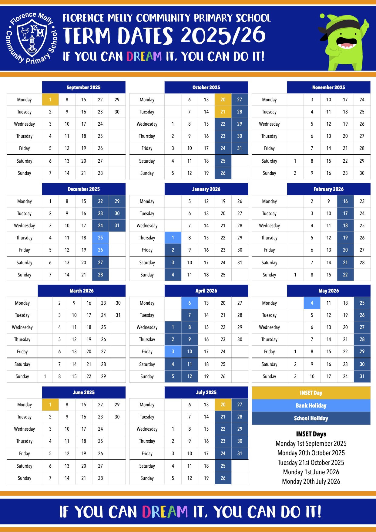 We have also included the term dates in a calendar view format, for those of you who would prefer them this way.