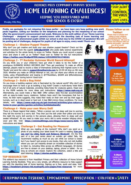 Please find below a copy of our famous ‘Home Learning Challenges’ designed to support parents/carers with the difficult task of home educating! This edition is packed full of activities for you to get your teeth stuck into. As always, make sure that you let us know how you get on by posting on our Twitter feed. Enjoy…