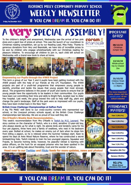 This week’s newsletter can be accessed by clicking the following link: Newsletter 02/12/22. We apologise for not sending a newsletter home last week (Mr Leach, who writes them, was off school unwell). Back to normal this week! Enjoy…