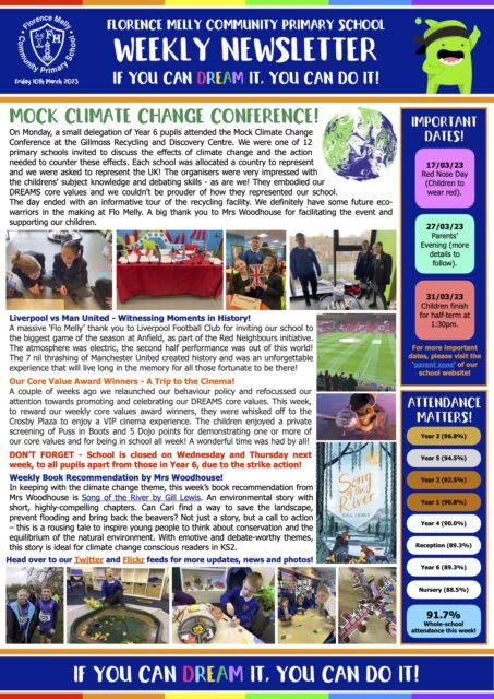 This week’s newsletter can be accessed by clicking the following link: Newsletter 10/03/23. There is an important update about Red Nose Day next Friday and a reminder about the strike days. Have a wonderful weekend.