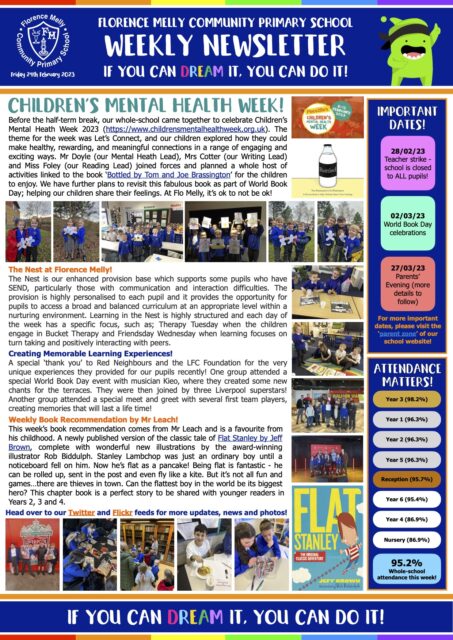First and foremost, welcome back to school after the half-term break. We hope that you had a relaxing holiday and enjoyed lots of quality family time. This week has been action-packed and fun-filled. For a snapshot of what we have been getting up to, please use the following link to access our weekly newsletter: Newsletter 24/02/23. On the back side of the newsletter is an important parent/carer update; including a reminder about next week’s teacher strike.