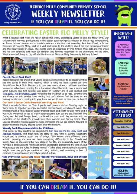 This week’s newsletter can be accessed by clicking the following link: Newsletter 31/03/23. Have a wonderful Easter holiday and we will see you all on Monday 17th April 2023.