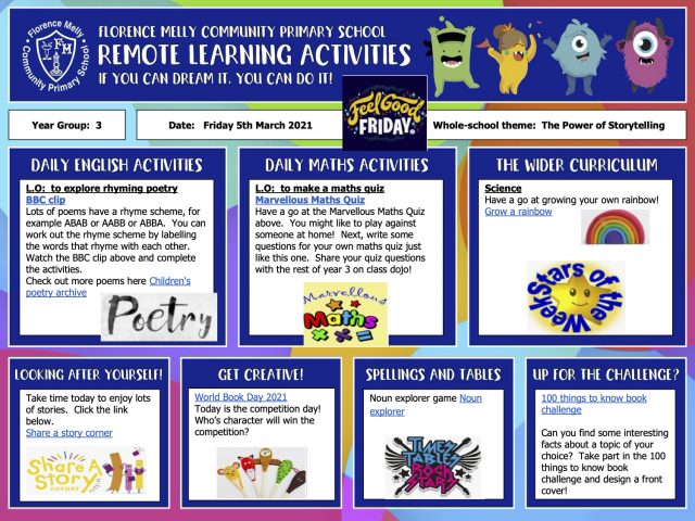 Here is the last ever (hopefully) Year 3 Remote Learning Template…