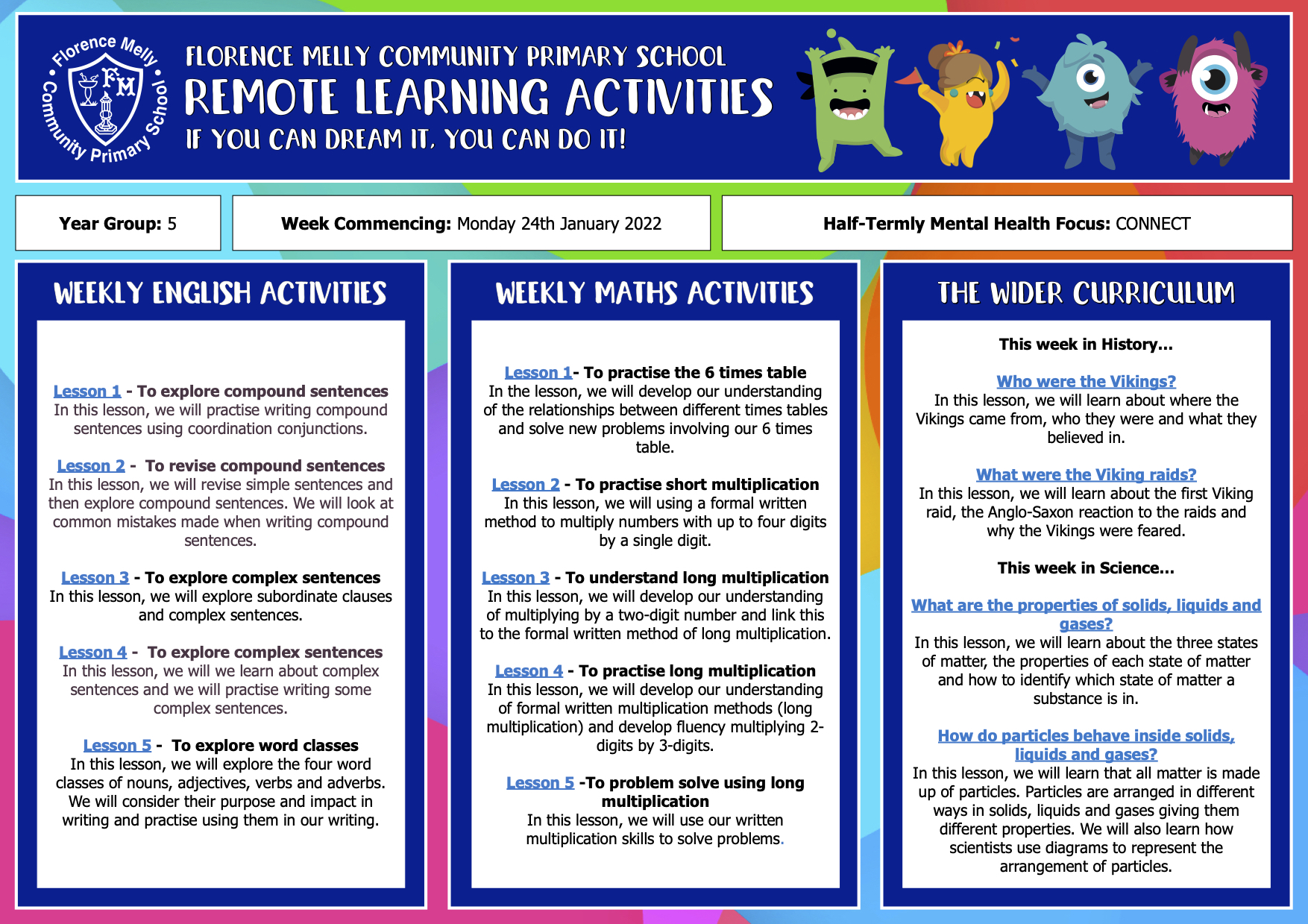 Year 5’s Weekly Remote Learning Template – 26/01/22